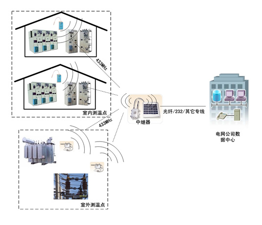 在電力系統(tǒng)中,高壓開(kāi)關(guān)、GIS(氣體絕緣變電站)等高壓電器和載流母線等電力設(shè)備在負(fù)載電流過(guò)大時(shí)會(huì)出現(xiàn)溫升過(guò)高,最后能使相鄰的帶電部件性能劣化,甚至擊穿,根據(jù)電力安全監(jiān)督部門提供數(shù)據(jù)分析,全國(guó)電力單位每年因?yàn)楦邏洪_(kāi)關(guān)、母線溫度過(guò)高引發(fā)的重大事故上千起,給生產(chǎn)和經(jīng)營(yíng)造成巨大經(jīng)濟(jì)損失。通過(guò)監(jiān)測(cè)母線接點(diǎn)、高壓電纜接頭、高壓開(kāi)關(guān)觸點(diǎn)溫度的運(yùn)行情況,可有效防止高壓輸、變電故障的發(fā)生,為實(shí)現(xiàn)安全生產(chǎn)提供有效保障。